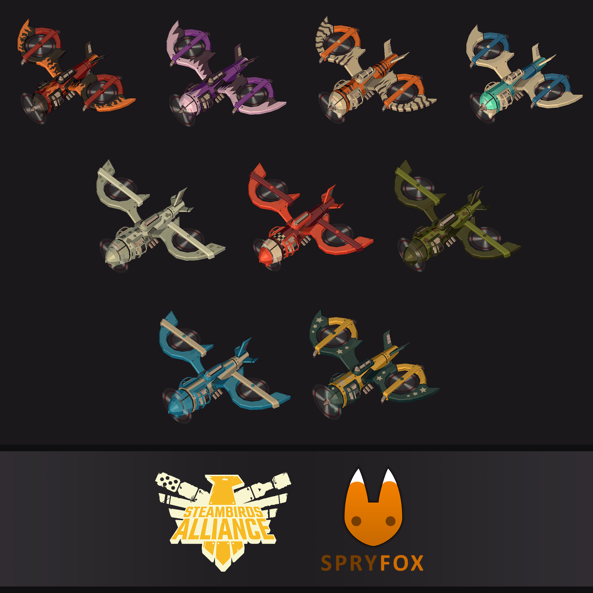 Steambird's Alliance is a co-op massively multiplayer shoot 'em up game where birds dogfight cats! It is set in a diesel punk wasteland ruled by the evil cat dictator, Meowza. Join the Rebel Alliance!